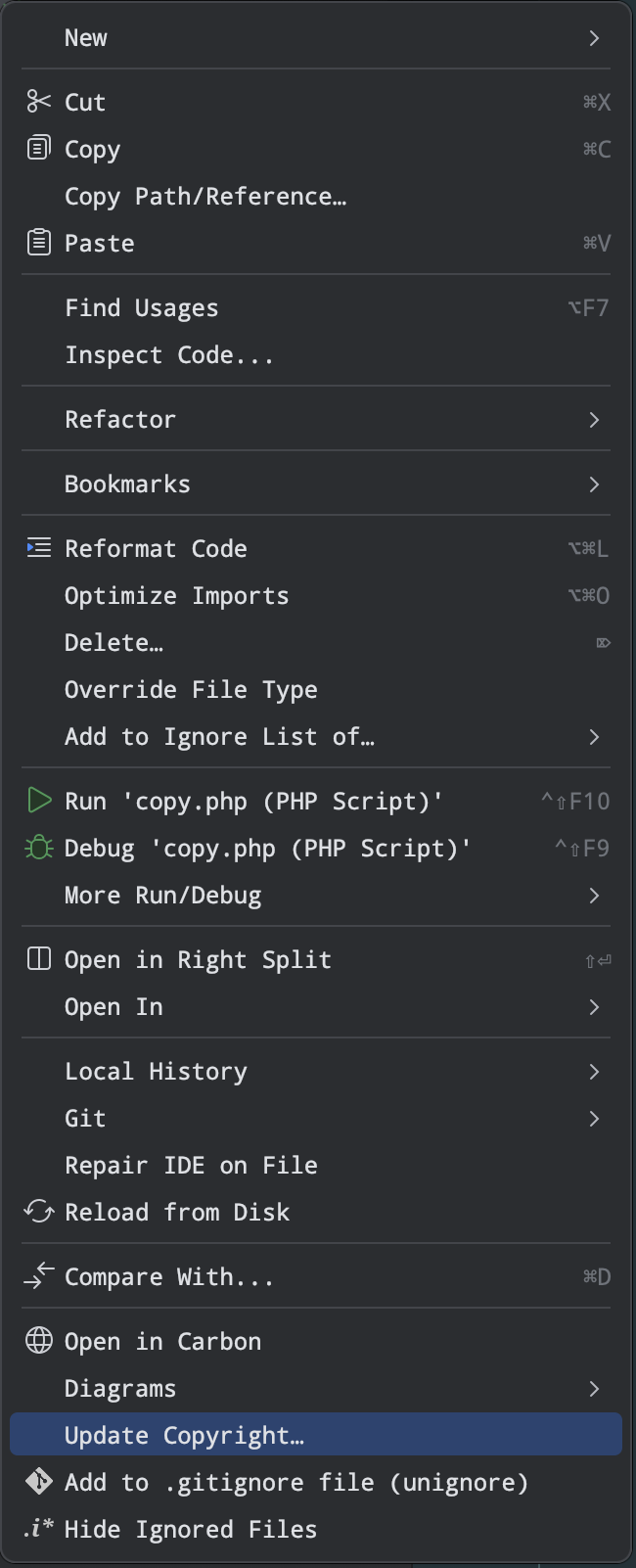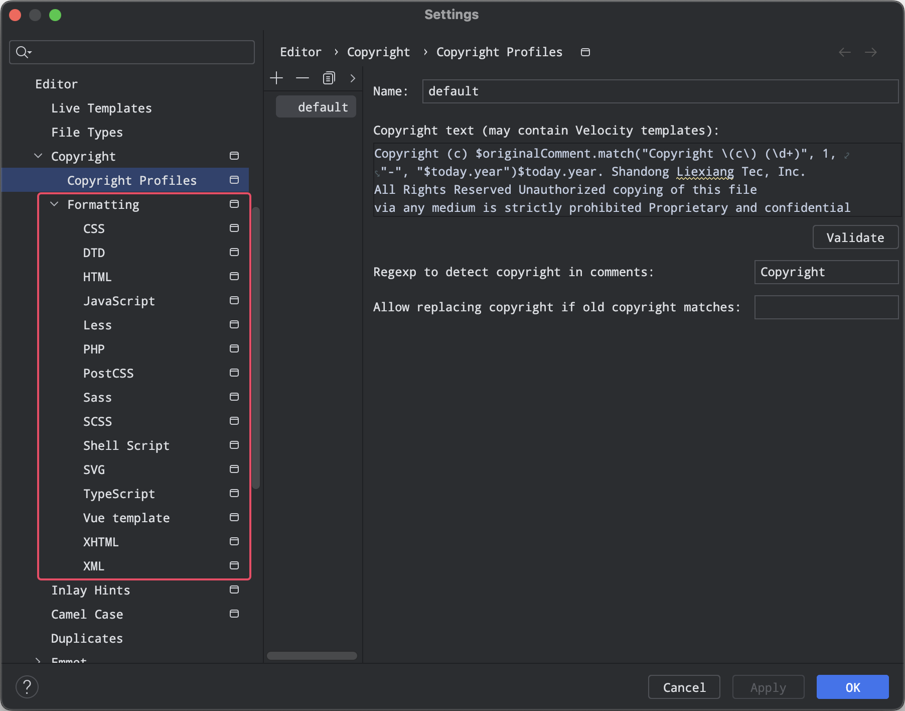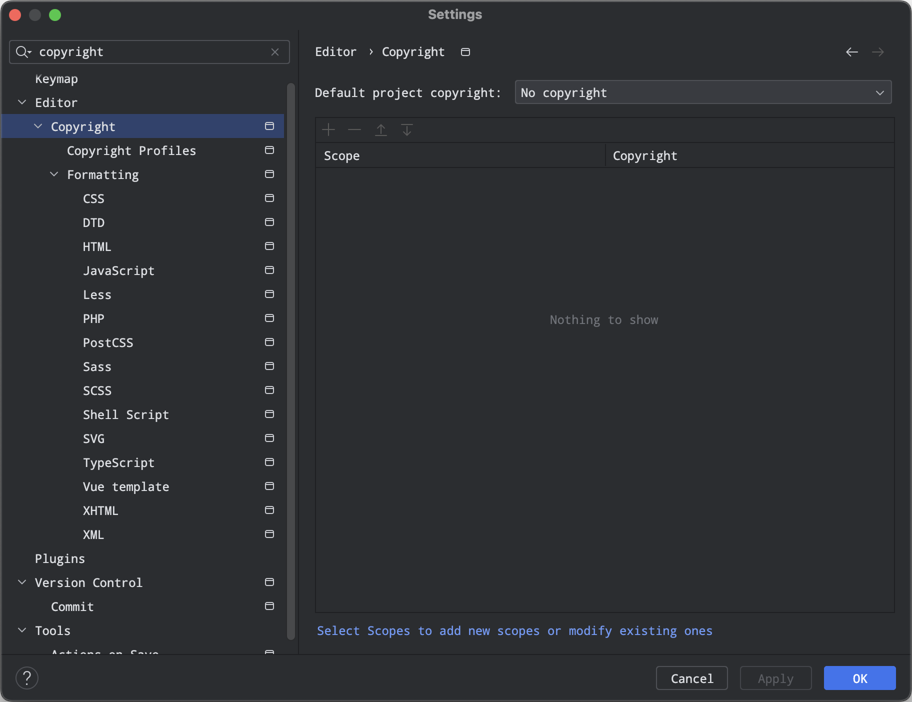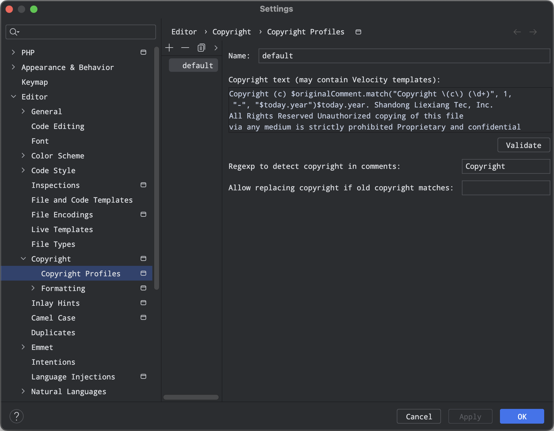 在 Jetbrains 系 IDE 中使用版权 Copyright