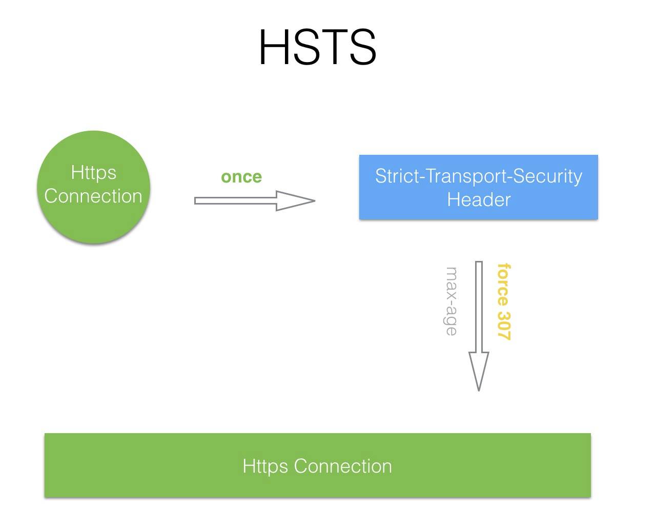 浏览器在获取该响应头后,在 max-age 的时间内,如果遇到 HTTP 连接,就会通过 307 跳转強制使用 HTTPS 进行连接,并忽略其它的跳转设置(如 301 重定向跳转):
